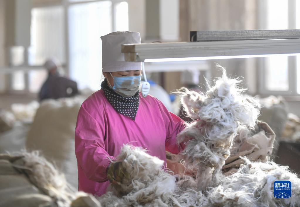 2月2日,赤峰東黎羊絨股份有限公司的工人對羊絨進(jìn)行人工初選。