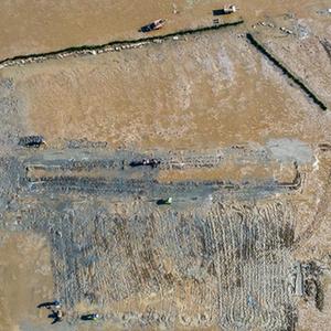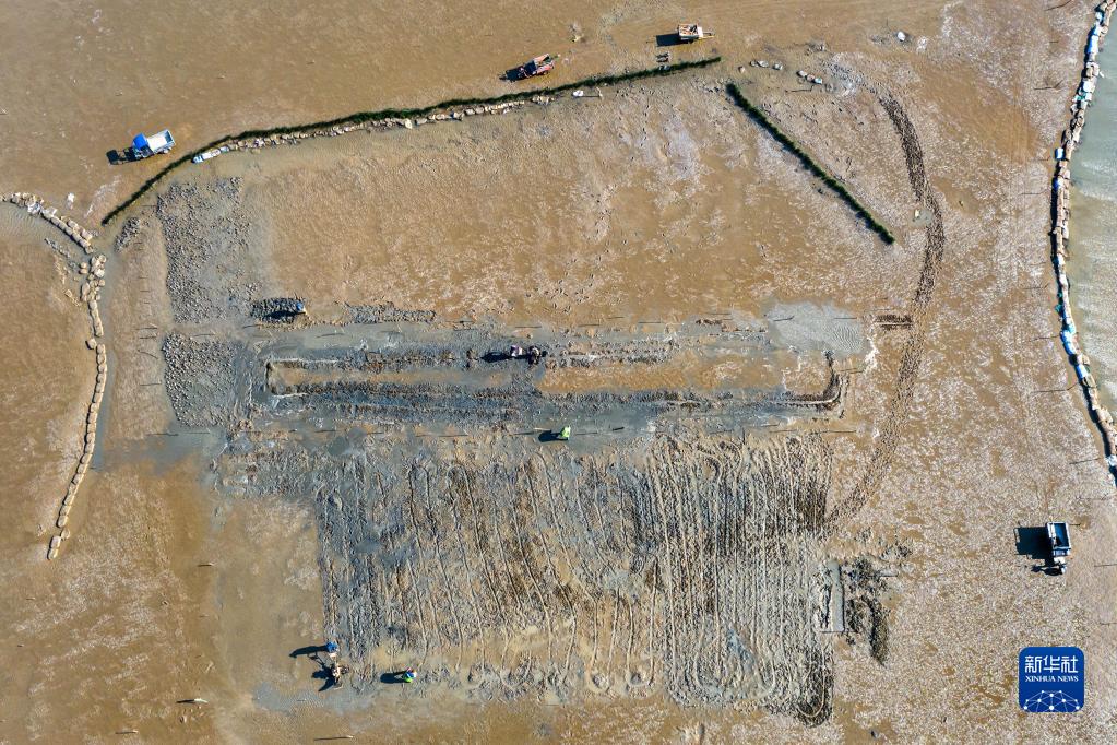 2月2日,福州瑯岐島漁民在翻耕灘涂播種蟶苗(無(wú)人機照片)。