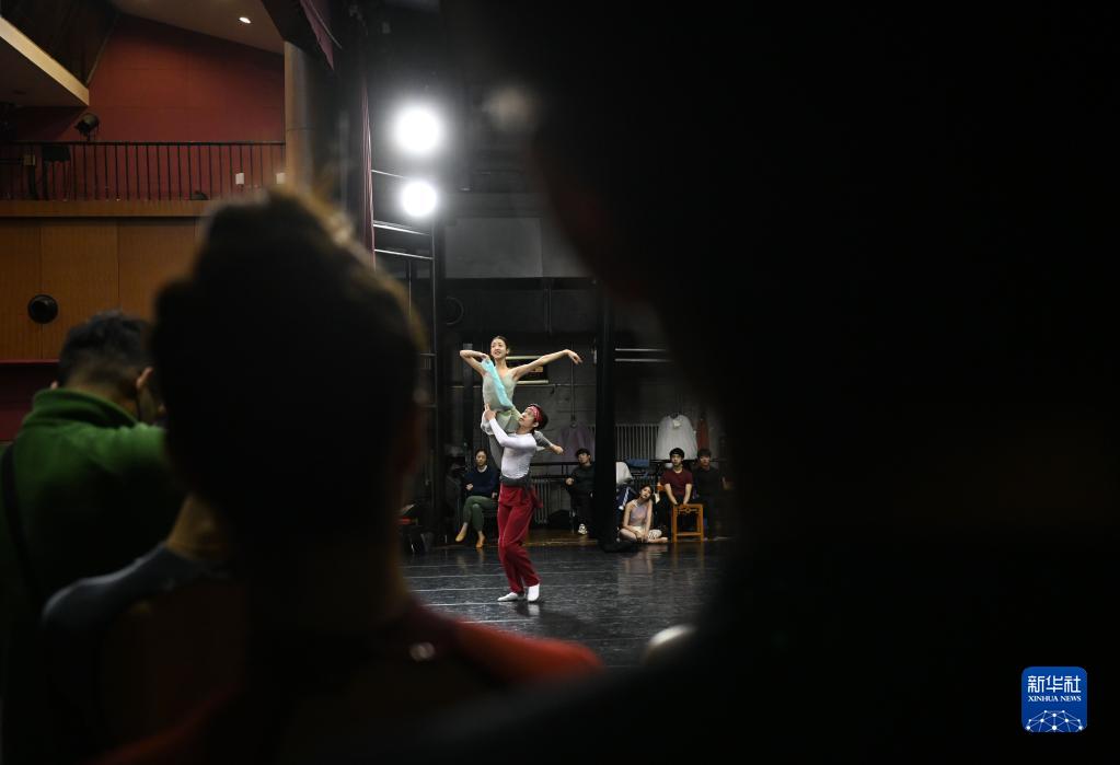 2月2日,在芭蕾舞劇《紅樓夢(mèng)》中飾演賈寶玉的演員黎文韜(下)、飾演林黛玉的演員邱蕓庭在排練。