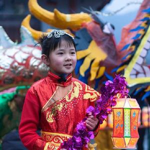 2月2日,浙江省杭州市淳安縣里商鄉的一名小朋友參加里商仁燈元宵巡游。