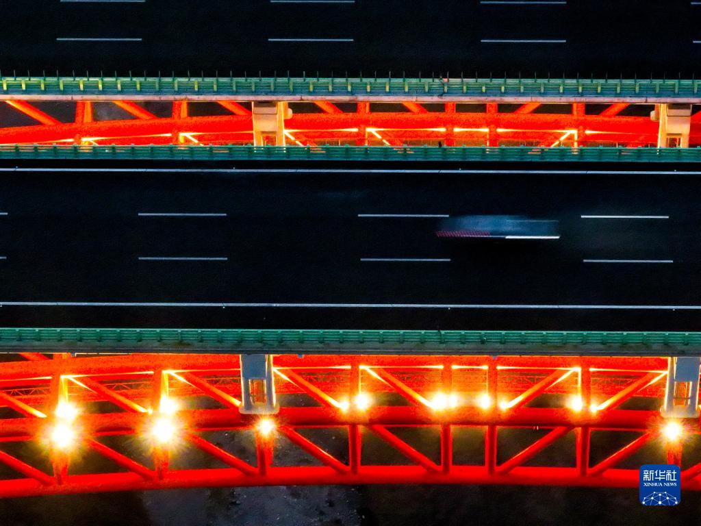 2月2日,車(chē)輛從貴州省遵義市大發(fā)渠特大橋上經(jīng)過(guò)(無(wú)人機照片)。