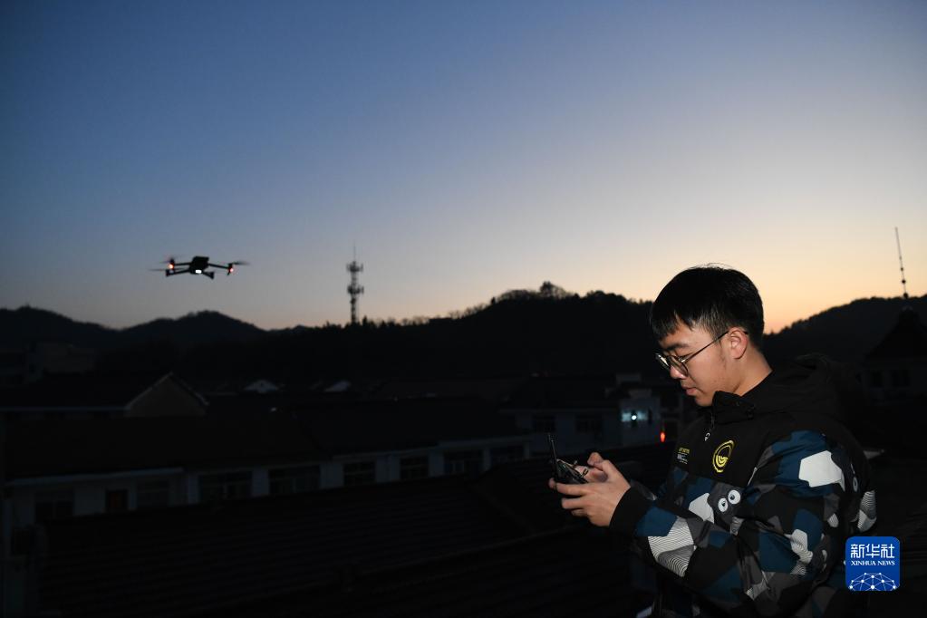 1月31日,郭昊在安徽省六安市舒城縣湯池鎮進(jìn)行無(wú)人機航拍。