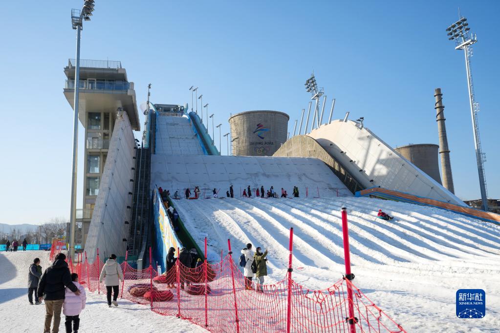 手推“小海豚”在“冰絲帶”內前行、乘坐雪圈從首鋼大跳臺上飛馳而下、腳踩雪板在“雪飛燕”感受冬奧雪道……