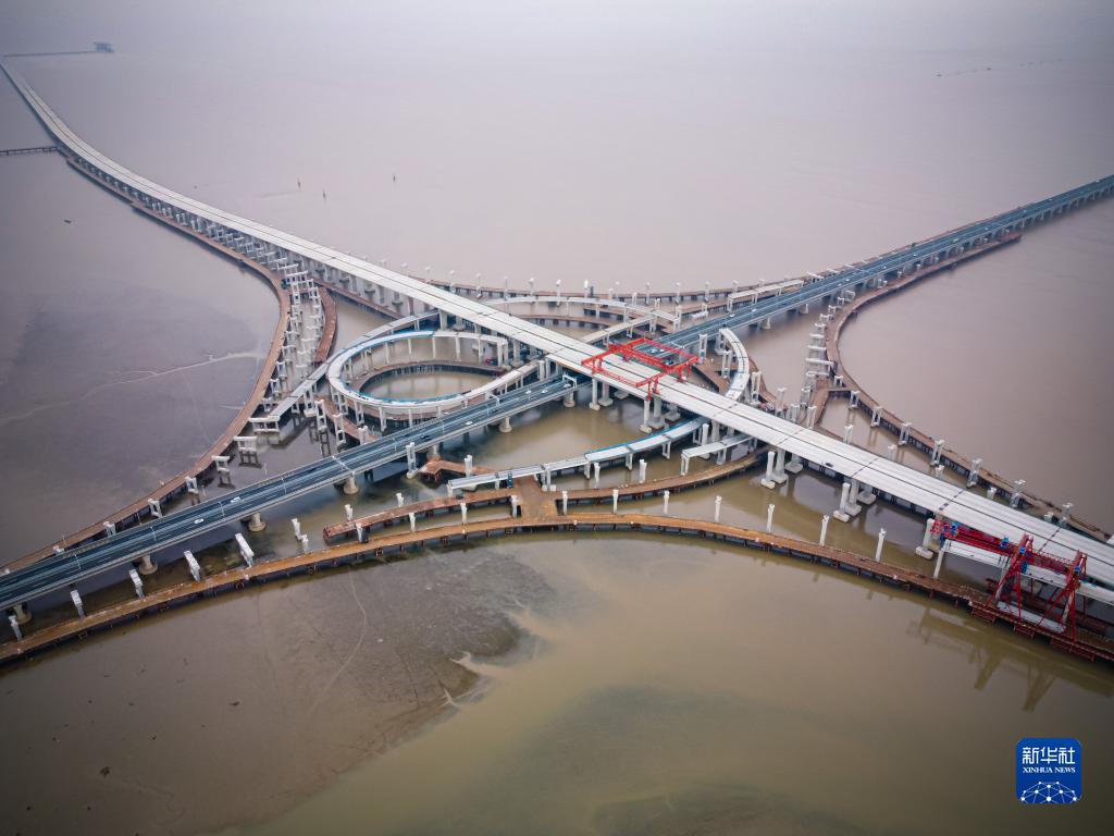 杭甬高速復線(xiàn)一期工程濱?;ネ⒔粯蚪ㄔO現場(chǎng)(2月1日攝,無(wú)人機照片)。杭甬高速復線(xiàn)一期工程全長(cháng)55.833公里。