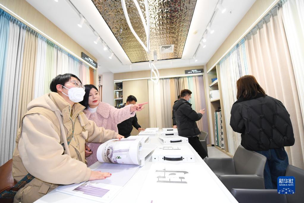 2月3日,在位于紹興柯橋的中國輕紡城,從全國各地趕來(lái)的客商在北聯(lián)市場(chǎng)選購窗簾。