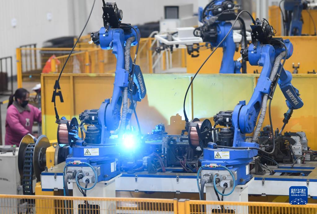 在位于臺州臨海的浙江正特股份有限公司,智能機器人在自動(dòng)焊接生產(chǎn)線(xiàn)上工作(2月2日攝)。