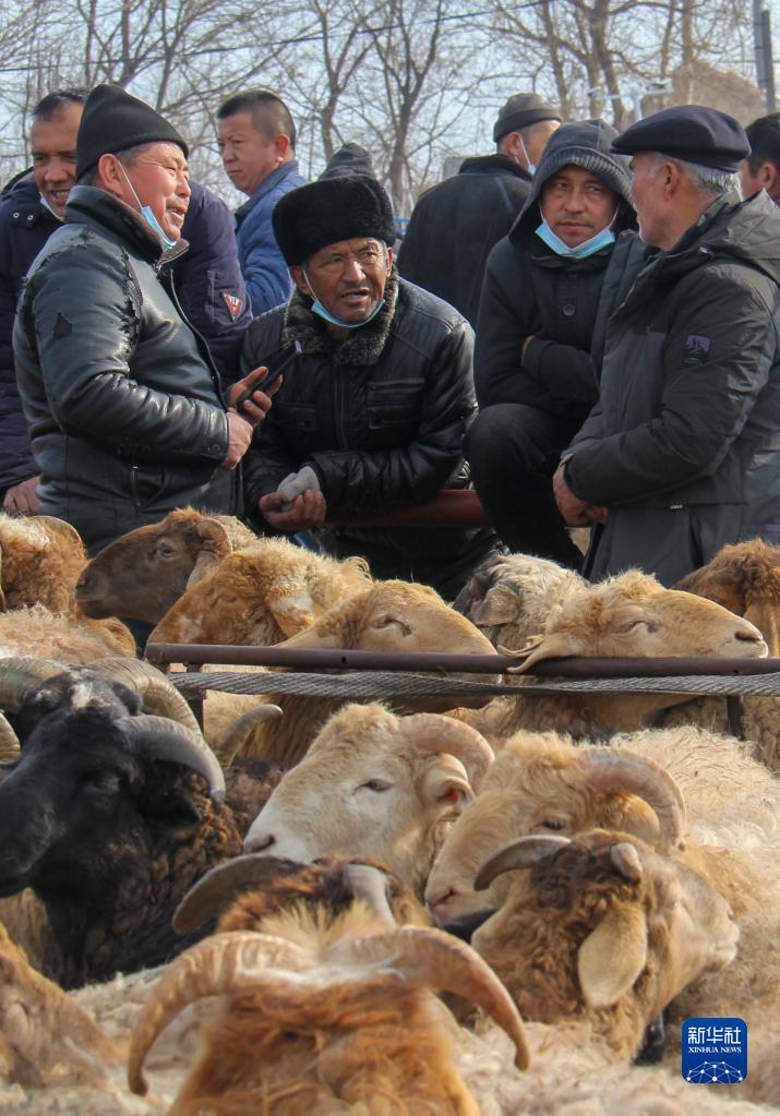 2月1日,位于新疆伊寧縣愉群翁回族鄉阿勒推村的新疆創(chuàng )錦黃公農產(chǎn)品交易市場(chǎng)開(kāi)市,市場(chǎng)商品琳瑯滿(mǎn)目,牛羊馬交易火爆。