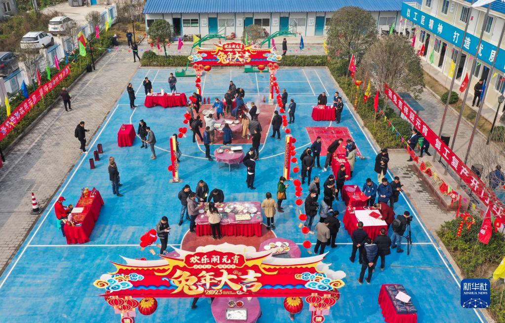 這是2月3日在位于重慶的中建六局科學(xué)城隧道工程一標段項目部拍攝的迎元宵主題活動(dòng)現場(chǎng)(無(wú)人機照片)。