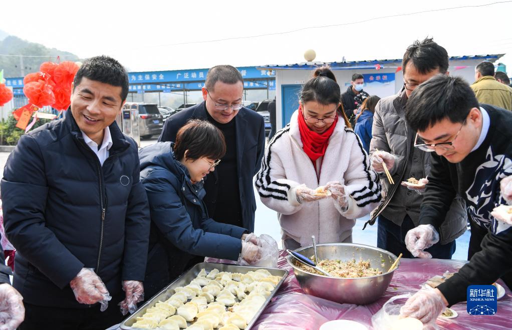 2月3日,在位于重慶的中建六局科學(xué)城隧道工程一標段項目部,職工在迎元宵主題活動(dòng)上包餃子。