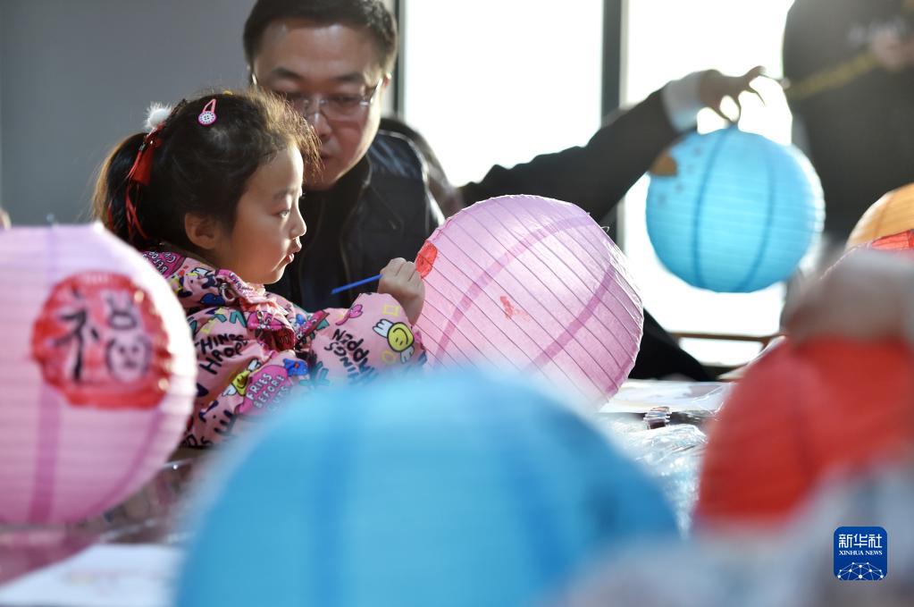 2月3日,在河北省石家莊市井陘縣文旅產(chǎn)業(yè)孵化園,小朋友和家長(cháng)一起手繪彩燈。