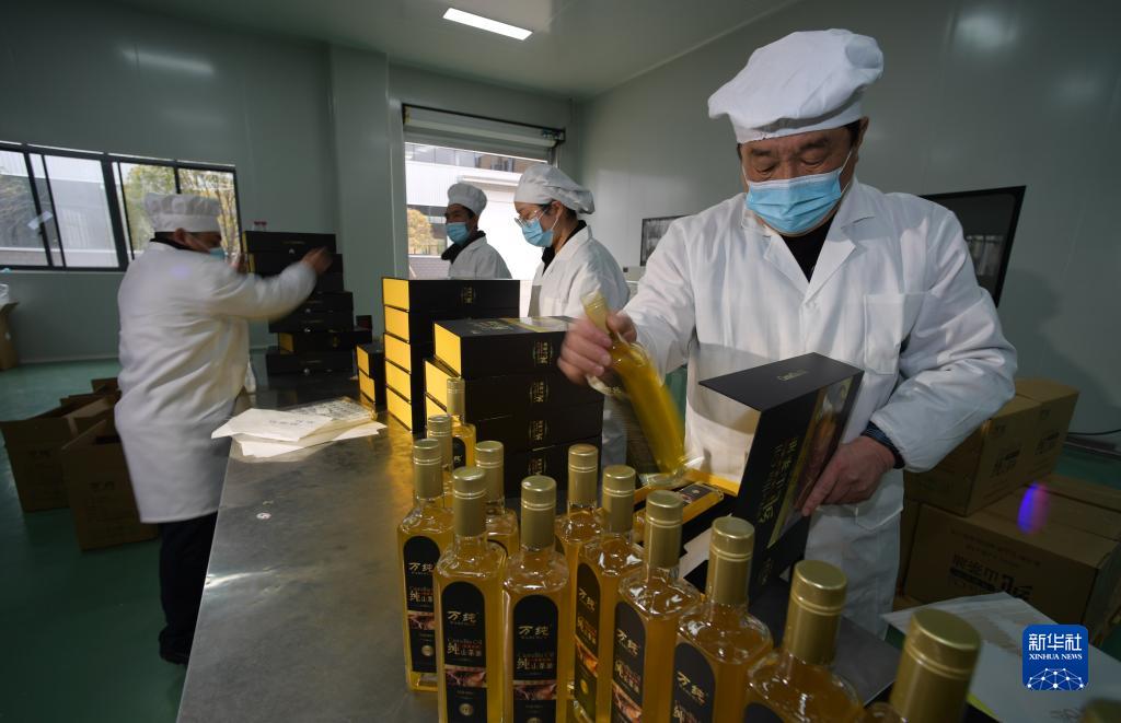 2月3日,在貴州玉屏侗族自治縣油茶基地的油茶加工企業(yè),工人在生產(chǎn)車(chē)間包裝產(chǎn)品。