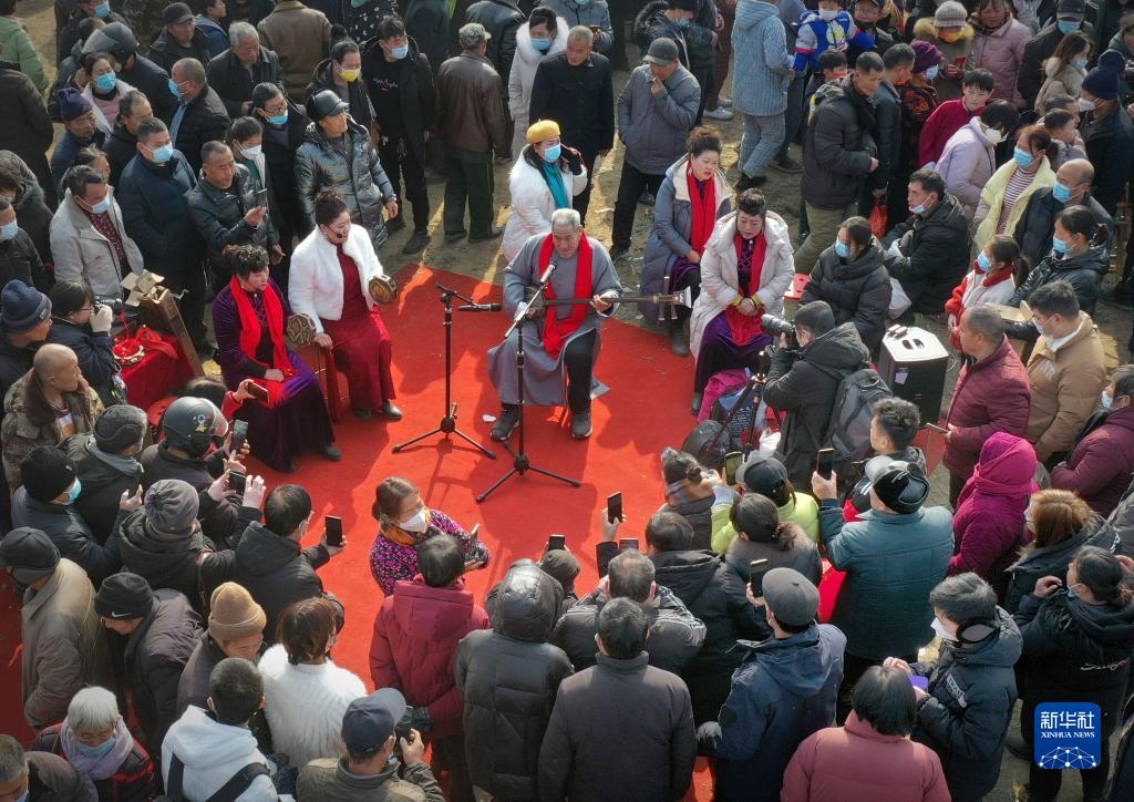 2月3日,觀(guān)眾在書(shū)會(huì )現場(chǎng)觀(guān)看藝人表演(無(wú)人機照片)。