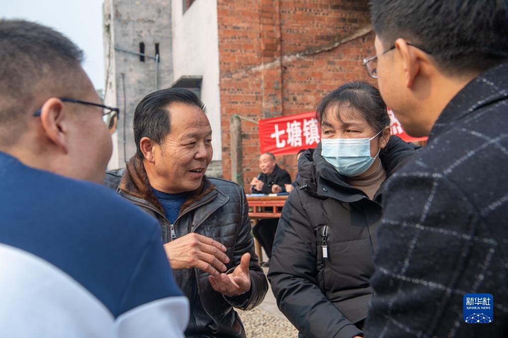 2月3日,在重慶市璧山區七塘鎮將軍村“三級院壩會(huì )”上,村民、商戶(hù)、干部在一起交流討論。