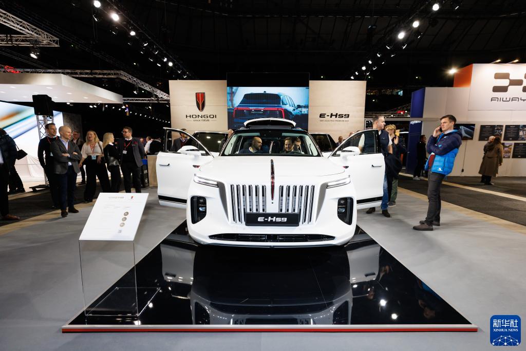 2月3日,人們在瑞典斯德哥爾摩舉辦的電動(dòng)車(chē)展上參觀(guān)紅旗電動(dòng)車(chē)。