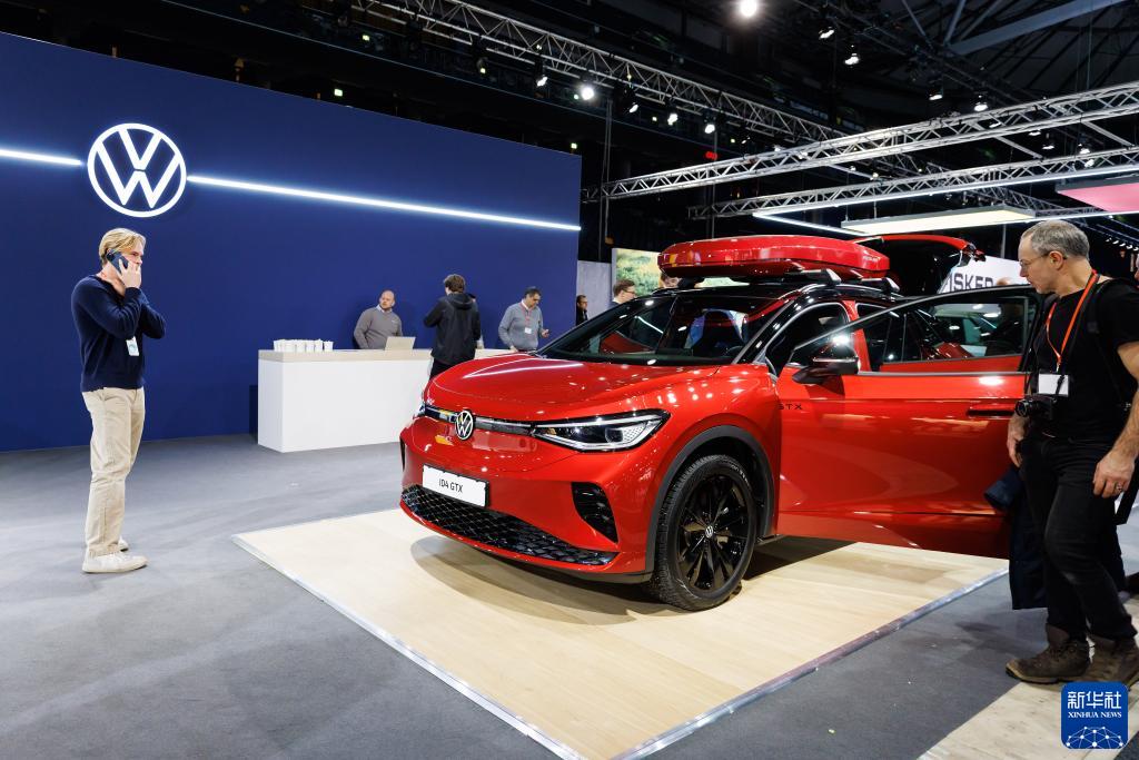 2月3日,人們在瑞典斯德哥爾摩舉辦的電動(dòng)車(chē)展上參觀(guān)大眾電動(dòng)車(chē)。