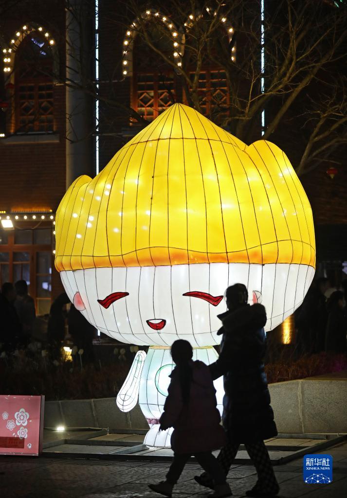 2月3日,游客在營(yíng)口遼河老街觀(guān)賞花燈。
