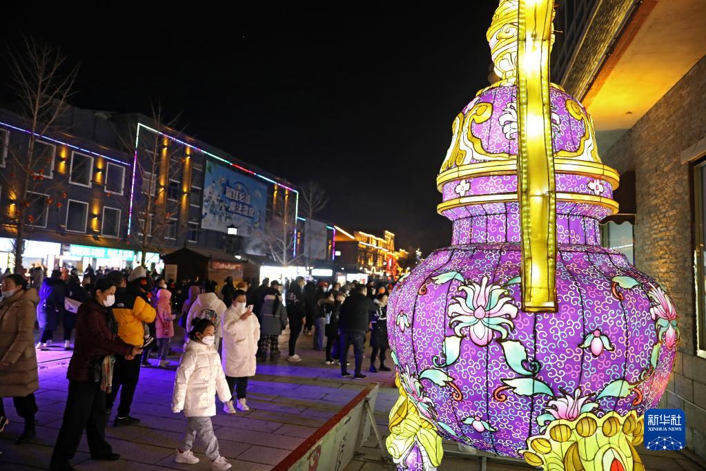 2月3日,游客在營(yíng)口遼河老街觀(guān)賞花燈。