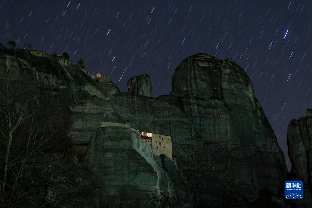 這是2月1日拍攝的星空下的希臘邁泰奧拉修道院和砂巖峰。