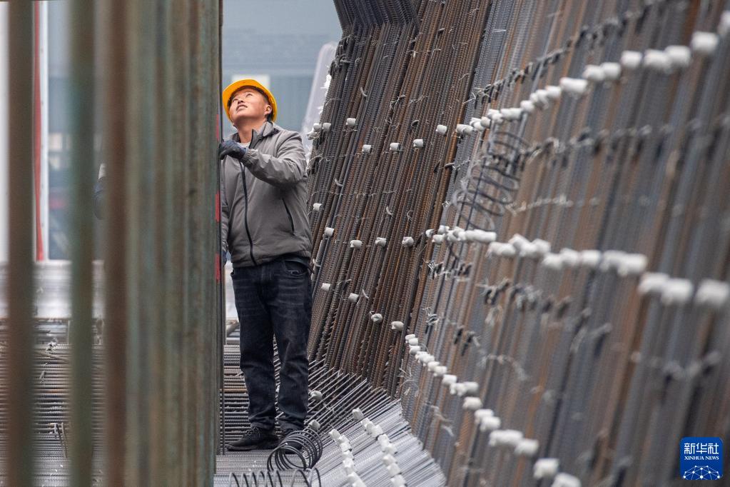 2月4日,在渝昆高鐵重慶段建設施工現場(chǎng),施工人員在進(jìn)行作業(yè)。