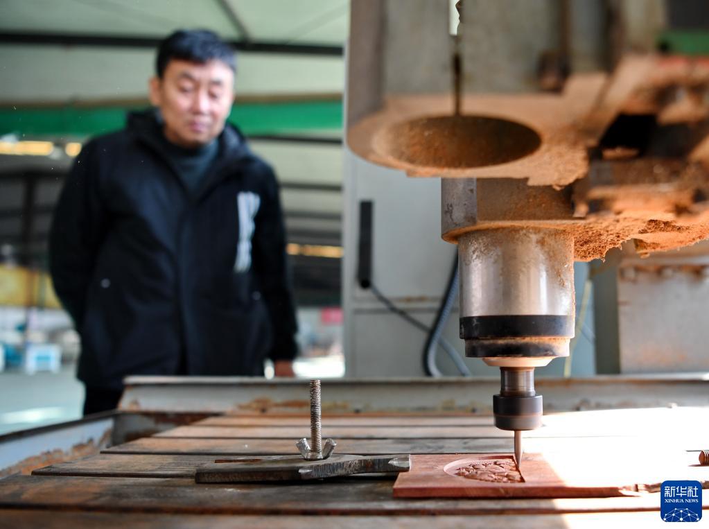 2月3日,河北省武強縣一家數控企業(yè)的工作人員使用數控機床制作年畫(huà)木版。