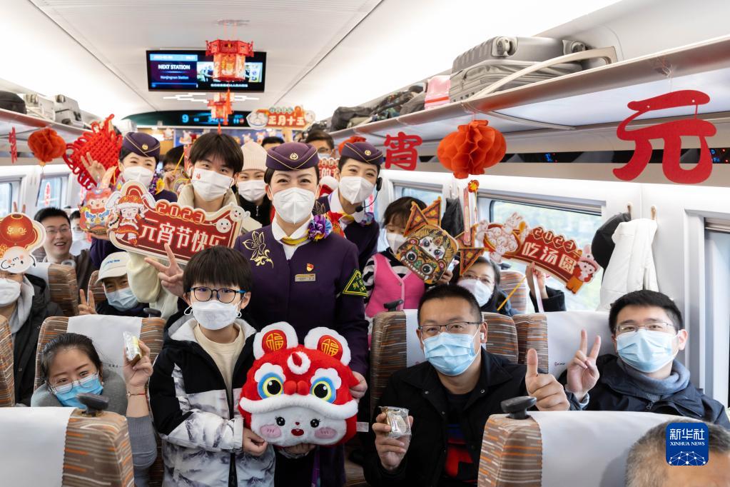 2月4日,鐵路上??瓦\段乘務(wù)人員和旅客在G8次列車(chē)上喜迎元宵佳節。