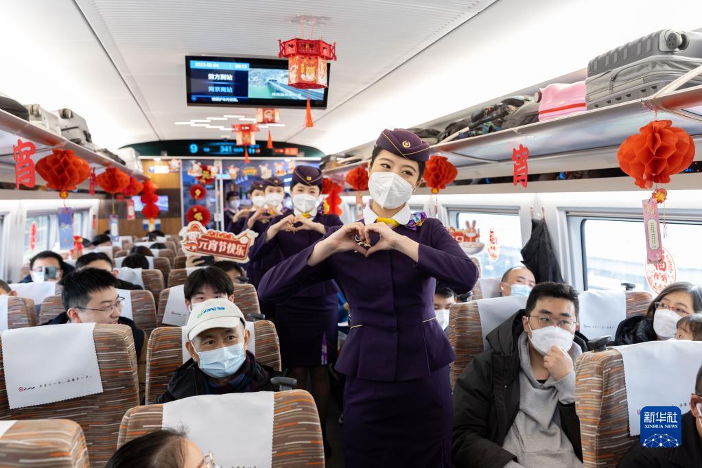 元宵節即將到來(lái),鐵路上??瓦\段在G8次列車(chē)上組織開(kāi)展“復興號上鬧元宵 花燈歌舞送祝?!被顒?dòng),讓廣大旅客在高鐵上喜迎佳節。