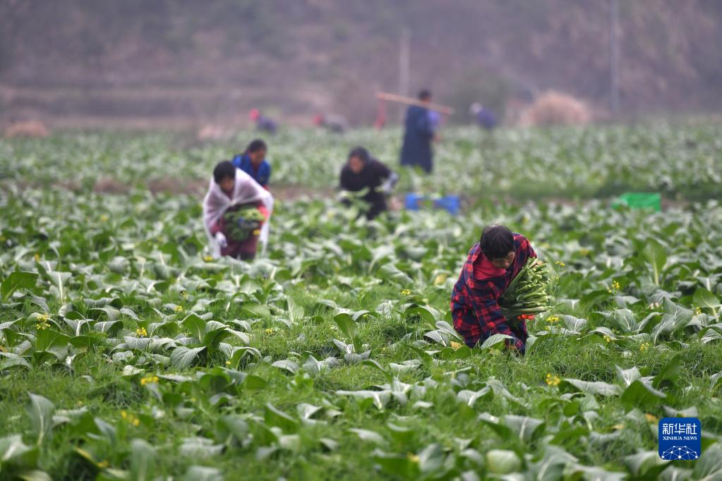 2月4日,菜農們在宜章縣天塘鎮一處蔬菜基地采收。