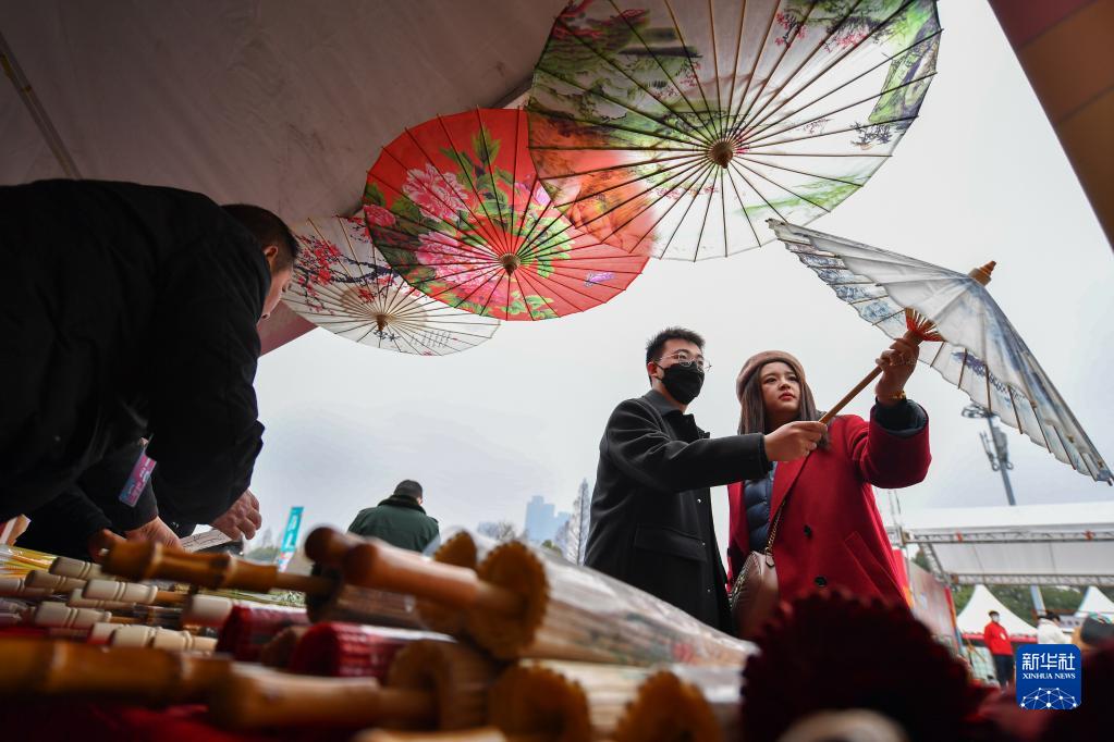 2月4日,市民和游客在湖南非遺元宵喜樂(lè )會(huì )現場(chǎng)參觀(guān)非遺項目“瀏陽(yáng)油紙傘制作工藝”。