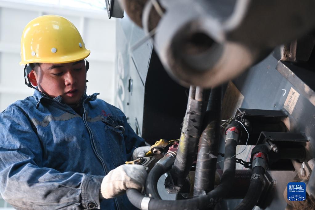 2月4日,在格爾木機務(wù)段檢修車(chē)間,馬國仁在檢修機車(chē)。
