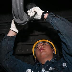 春運期間,青藏鐵路加開(kāi)多趟列車(chē),馬國仁所在的班組變得愈加忙碌。從早上八點(diǎn)半到下午六點(diǎn),馬國仁與工友在車(chē)間里不停地下地溝、上機車(chē),檢查機車(chē)每一個(gè)部件。