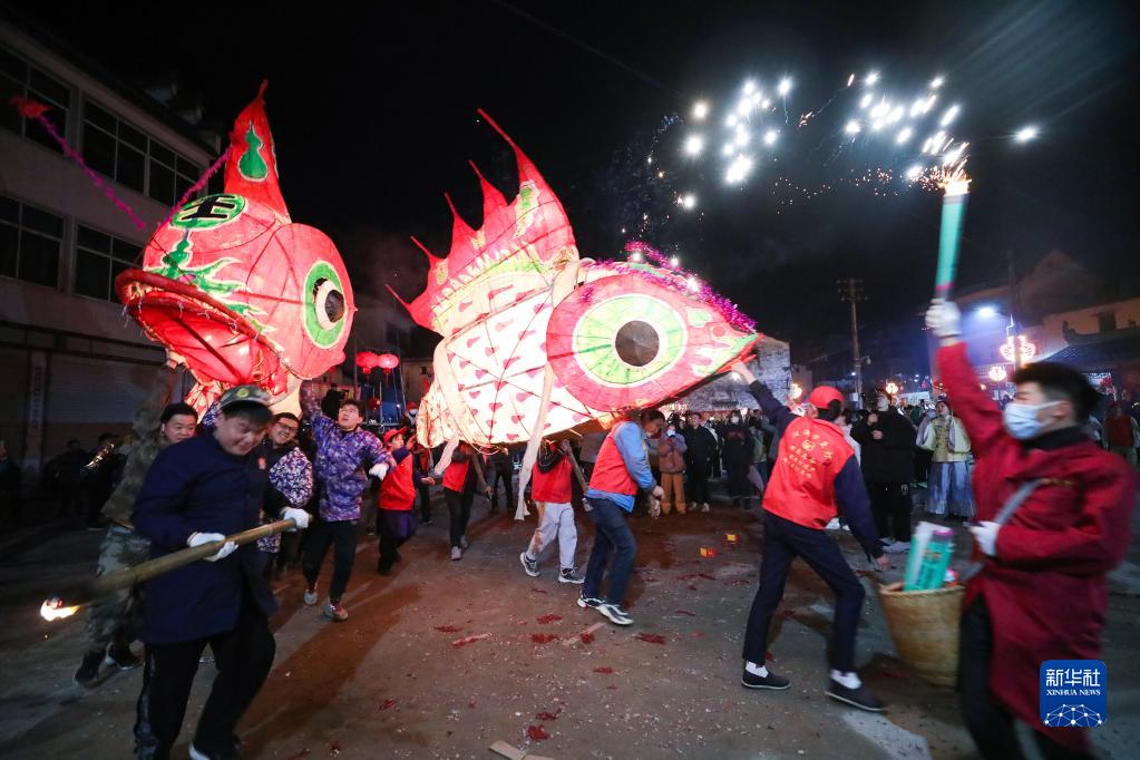 2月3日,安徽省黃山市歙縣溪頭鎮汪滿(mǎn)田村上演一年一度的嬉魚(yú)燈民俗。