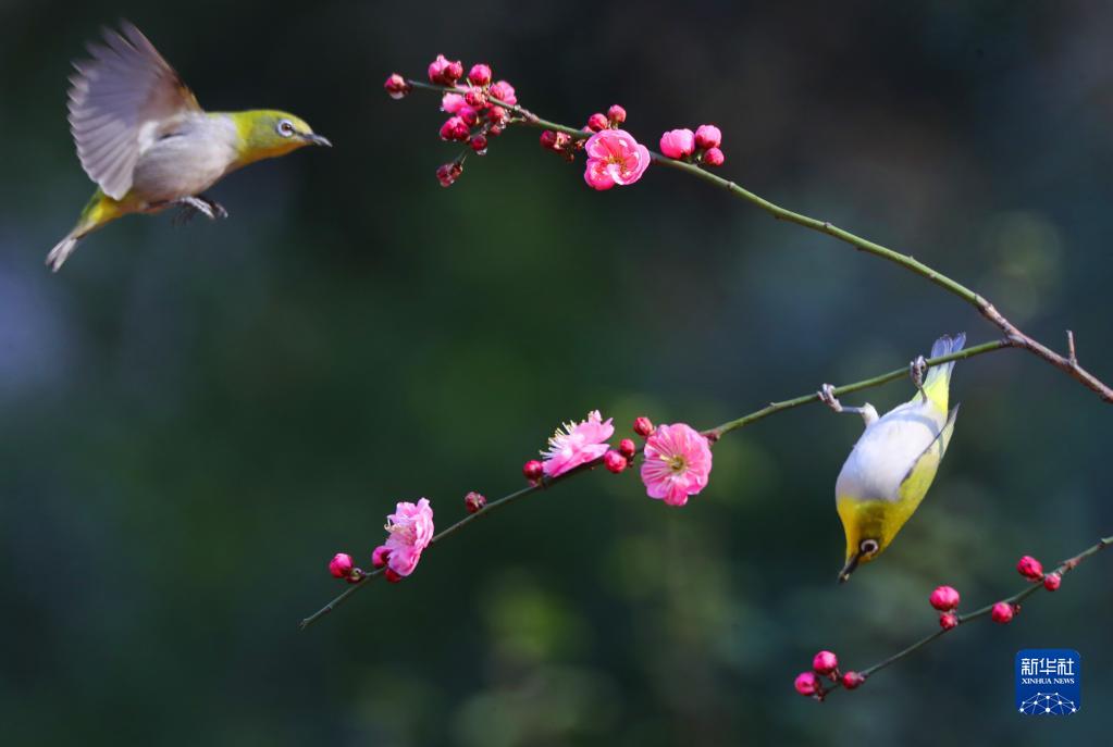 1月29日,在湖南省衡陽(yáng)市雁峰區五星村,梅花悄然綻放,小鳥(niǎo)在枝頭鳴唱,鳥(niǎo)語(yǔ)花香迎春來(lái)。