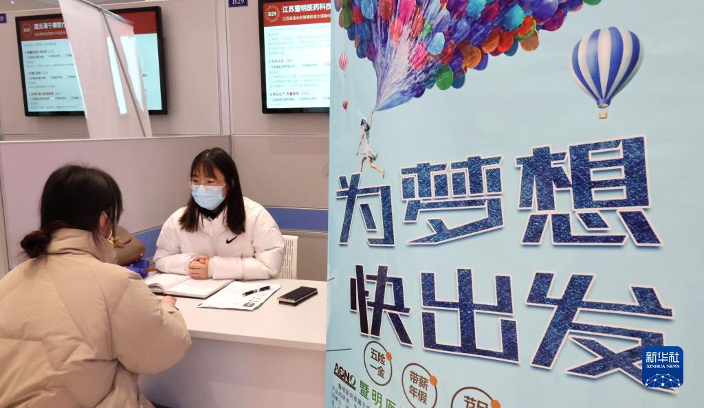 2月4日,在江蘇連云港市人力資源市場(chǎng),求職者在咨詢(xún)崗位招聘情況。連云港市舉辦“留連望返·就在港城”2023年春季人才交流大會(huì ),150余家用人單位提供6500余個(gè)工作崗位。
