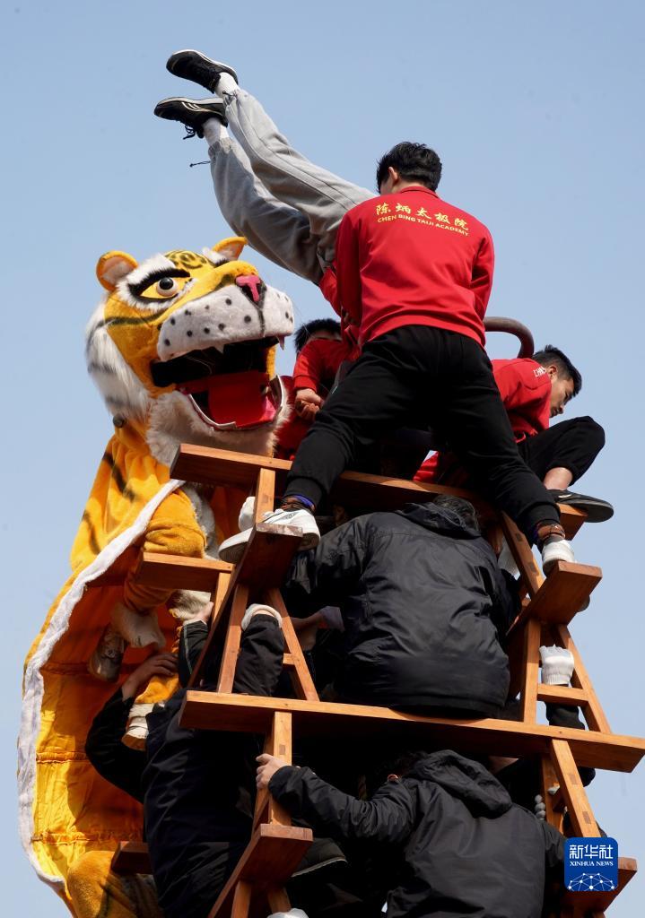 當日,河南省焦作市溫縣陳家溝村流傳數百年的傳統民俗節目“陳家溝舞虎”精彩上演,讓觀(guān)眾大飽眼福。