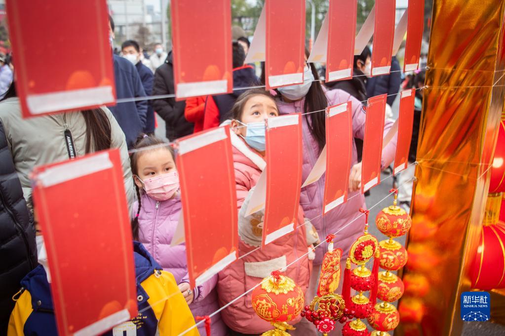 2月4日,小朋友在湖北省武漢市武漢體育中心舉行的中國車(chē)谷新春游園燈會(huì )上猜燈謎。