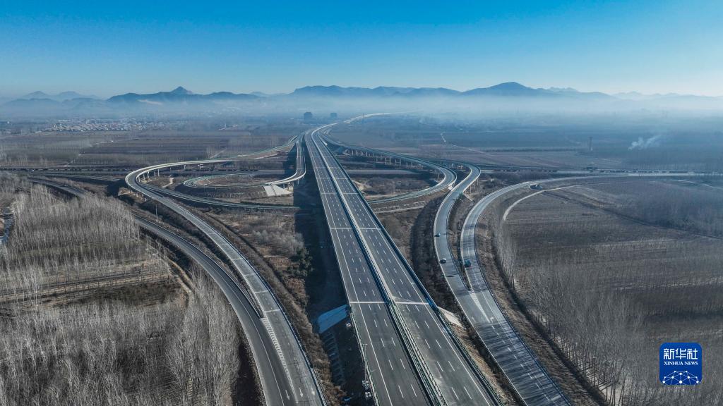 2月4日拍攝的京秦高速遵秦段下院寺樞紐互通(無(wú)人機照片)。