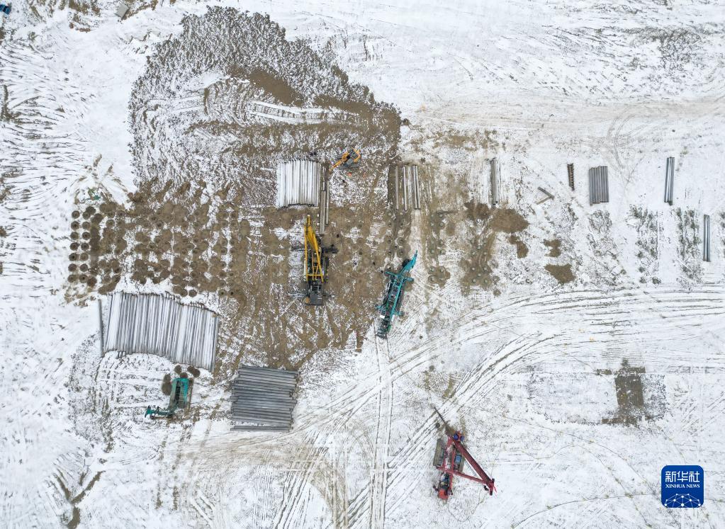工人在吉林省吉林市吉林石化煉油化工轉型升級項目施工現場(chǎng)作業(yè)(1月31日攝,無(wú)人機照片)。