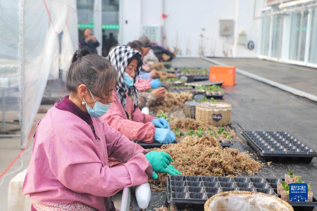 在位于吉林省公主嶺市的恒通生態(tài)農業(yè)科技開(kāi)發(fā)有限公司種植基地內,員工進(jìn)行花卉土培轉移工作(1月29日攝)。