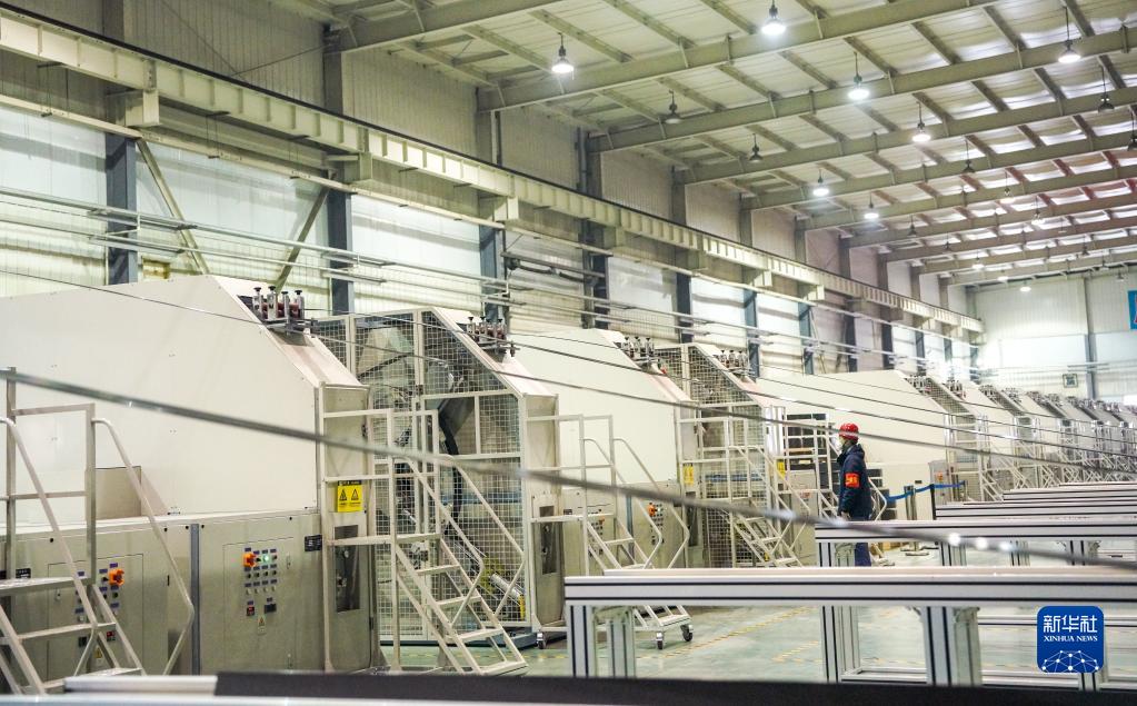 工人在吉林化纖集團吉林國興復合材料有限公司拉擠車(chē)間工作(1月31日攝)。