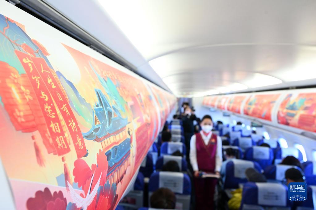 這是飛機客艙內的詩(shī)意裝扮(2月4日攝)。