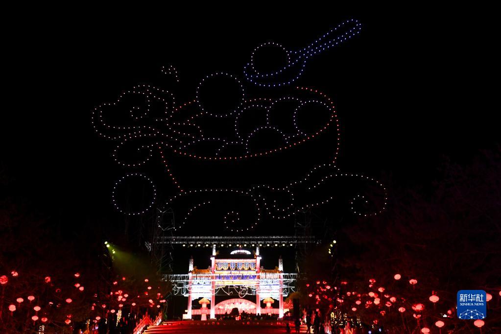 2月4日,在卓資縣九曲廣場(chǎng),無(wú)人機群組成“湯圓”圖案。