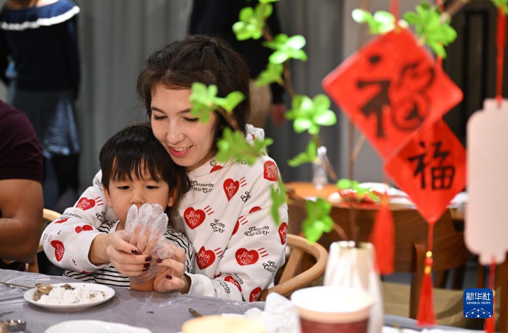 2月4日,參加活動(dòng)的外國人體驗包元宵。