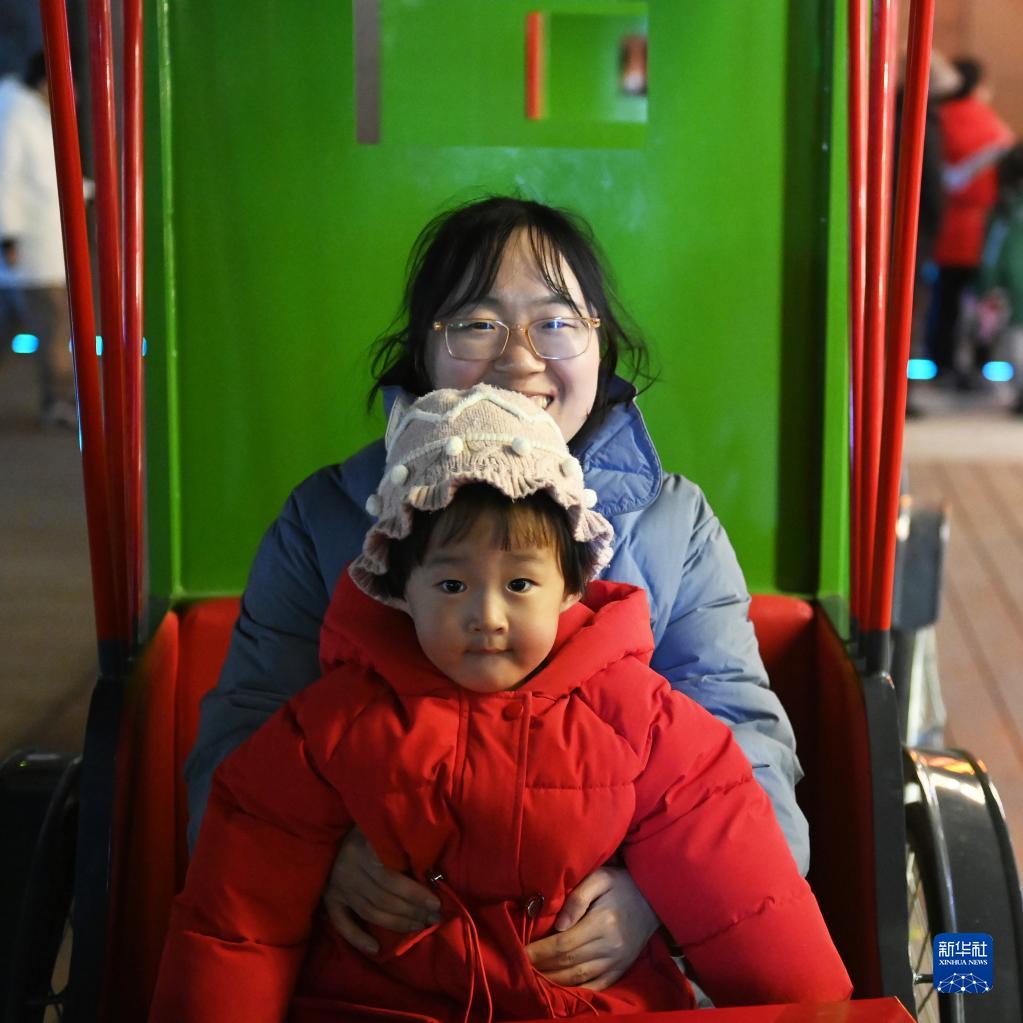 2月4日,游客在體驗馬車(chē)游樂(lè )設施。