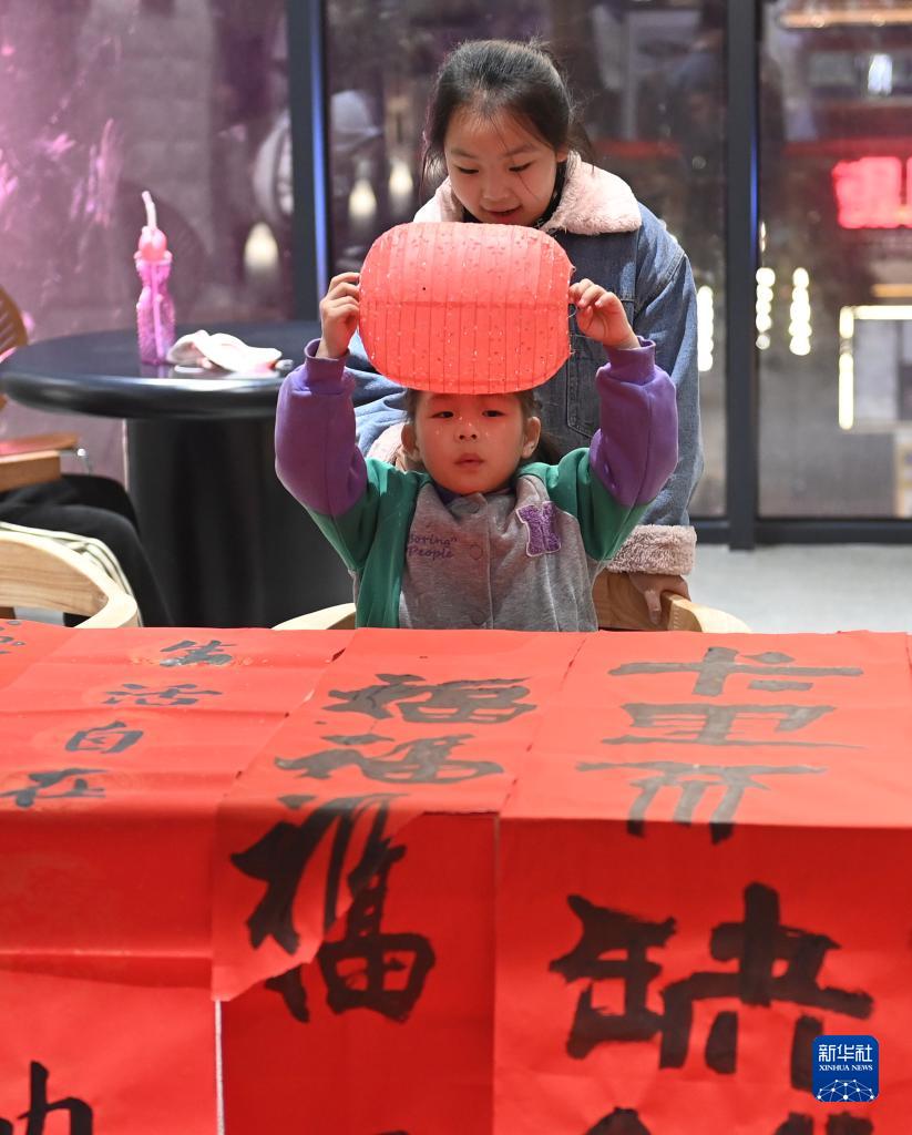2月4日,兩名小朋友在一處文化體驗館里玩耍。