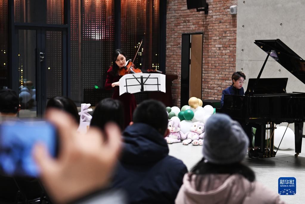 2月4日,觀(guān)眾在欣賞小提琴與鋼琴演奏。