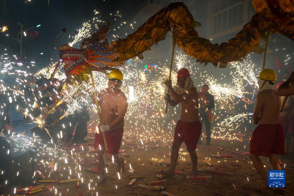 2月4日,人們在貴州省綏陽(yáng)縣蒲場(chǎng)鎮舞龍。