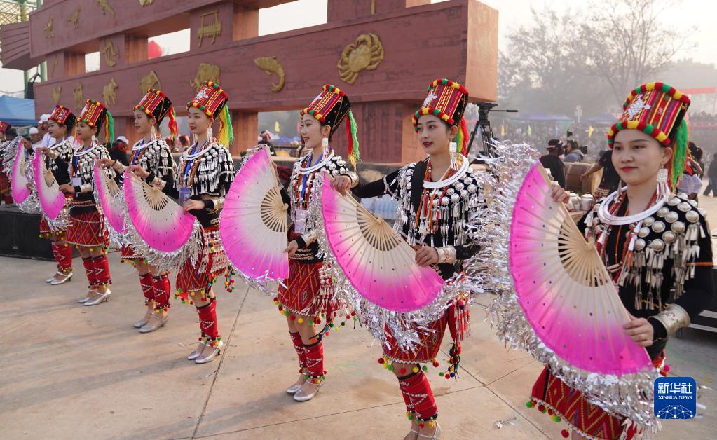 2月5日,在云南省德宏傣族景頗族自治州隴川縣,少數民族群眾載歌載舞,共慶佳節。