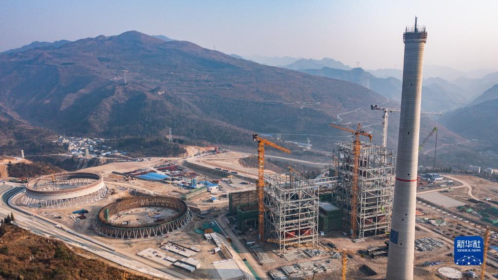 2月1日拍攝的盤(pán)江新光燃煤發(fā)電項目施工現場(chǎng)(無(wú)人機照片)。
