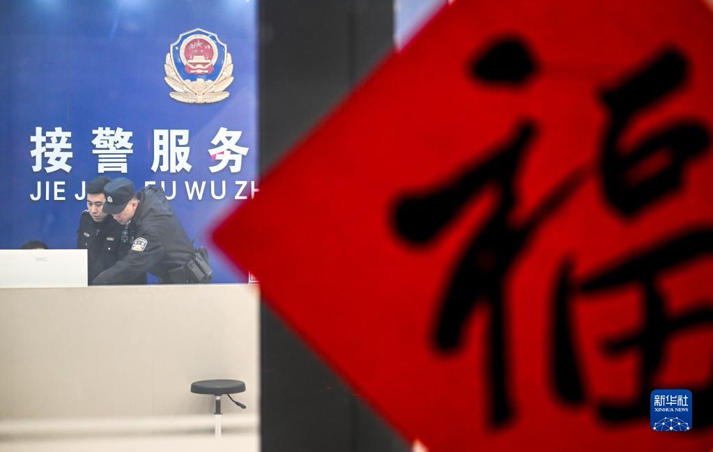 2月5日,內蒙古通遼市奈曼旗公安局大沁他拉派出所民警在接警服務(wù)臺值班。