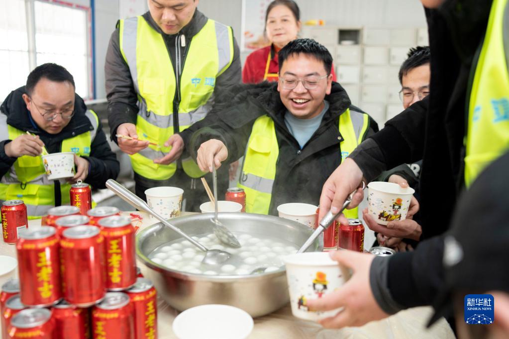 2月5日,在中建三局三公司平頂山項目部,工地建設者歡慶元宵佳節。